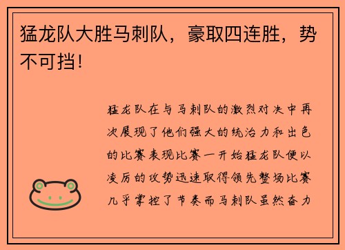 猛龙队大胜马刺队,豪取四连胜,势不可挡!